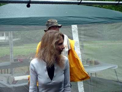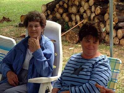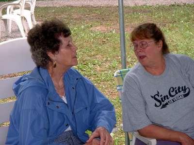 Me & Cousin Marge Agin (Here Jim caught us discussing Cousin Cindy's sanity after the Cumbya sing-a-long)